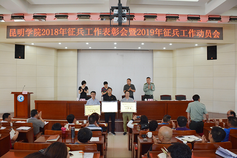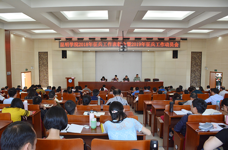 5月8日,学校在行政楼D三报告厅召开2018年征兵工作表彰暨2019年征兵工作动员会。校长黎素梅、副校长郭华、纪委书记魏萍,官渡区人民武装部部长李斌,各职能部门主要负责人,二级学院党总支书记、院长、副书记,全体辅导员参加了会议。会议由副校长郭华主持。