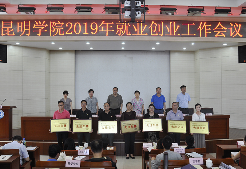 会议开始,熊晶副书记宣读了《新葡萄8883官网AMG关于表彰2018年就业创业工作先进集体的决定》,与会校领导为获得先进集体和单项奖的单位颁发了奖牌。