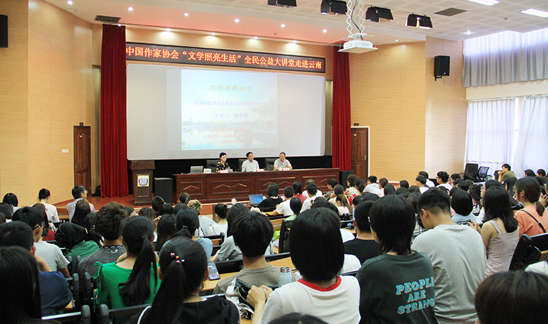 5月18日,中国作家协会“文学照亮生活”全民公益大讲堂走进新葡萄8883官网AMG。中山大学中文系教授谢有顺为新葡萄官网文学爱好者奉上一堂精彩文学大课。中国作协创联处处长荣杰、云南省作协副主席胡性能出席,新葡萄官网人文学院师生到会聆听。