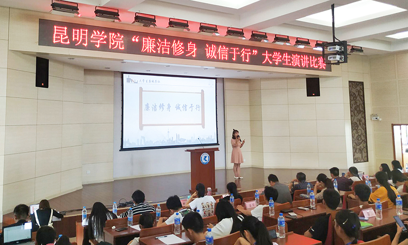 5月16日下午,由学校纪委办、党委宣传部主办,校团委、学生社团联合会协办,大学生廉诚学社承办的“廉洁修身 诚信于行”主题演讲比赛(决赛)在办公楼D区三楼报告厅举行。学校纪委办、党委宣传部、校团委、马克思主义学院等相关人员应邀出席并担任评委,各学院学生代表200余人到场观看比赛。
