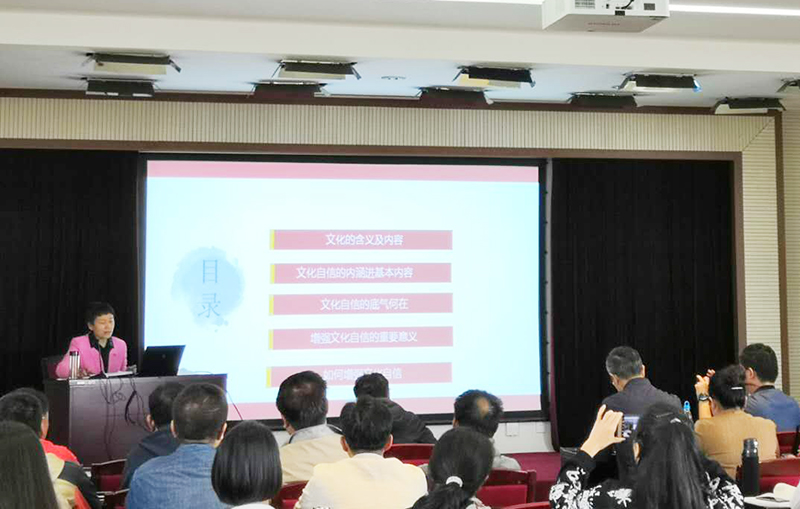 黎素梅校长围绕文化的含义及内容、文化自信的内涵及基本内容、文化自信的底气何在、增强文化自信的重要意义、如何增强文化自信五个方面进行了全面讲解。她以文化自信内涵为切入点,聚焦文化自信的基本内容和文化自信的底气何在,深入浅出地阐述了增强中国特色社会主义文化自信的路径和方法。