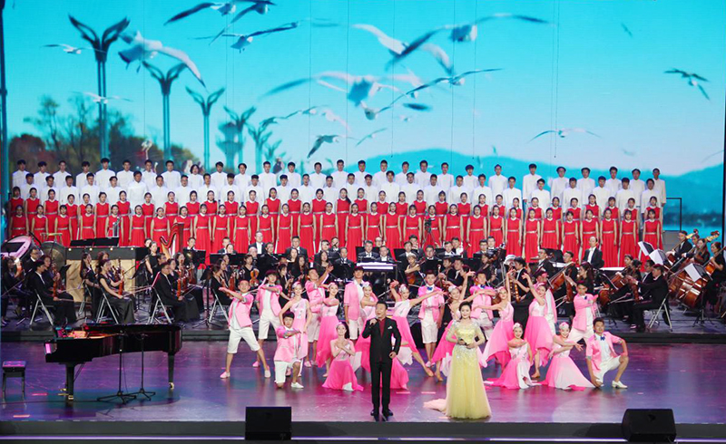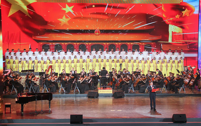 7月17日晚,第六届中国聂耳音乐(合唱)周开幕式暨“国歌唱响新时代”交响合唱音乐会在云南大剧院举行,学校音乐舞蹈学院100余师生组成的新葡萄8883官网AMG合唱团参加演出。