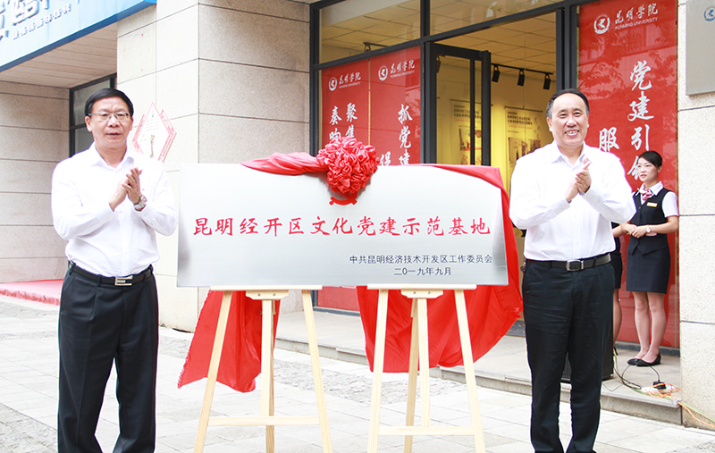9月5日,昆明经开区文化党建示范基地在新葡萄8883官网AMG美术与艺术设计学院紫云青鸟艺术众创空间举行揭牌仪式。昆明经开区管委会主任李河流、新葡萄8883官网AMG党委书记陈永明出席仪式并为基地揭牌。