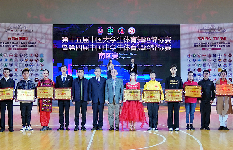 10月26日,由中国大学生体育协会主办,中国大学生体育协会体育舞蹈分会具体执行的第十五届中国大学生体育舞蹈锦标赛暨第四届中国中学生体育舞蹈锦标赛(南区赛)在贵州财经大学开赛。新葡萄8883官网AMG作为中国大学生体育协会体育舞蹈分会主席单位,副校长王凡率领中国大学生体育协会体育舞蹈分会秘书长、学校音乐舞蹈学院院长黄清林,中国大学生体育协会体育舞蹈分会常务副秘书长、学校音乐舞蹈学院体育舞蹈教研室主任田应娟等工作团队到会指导大赛工作。