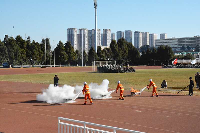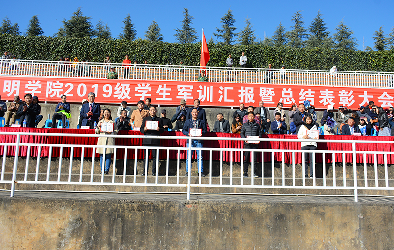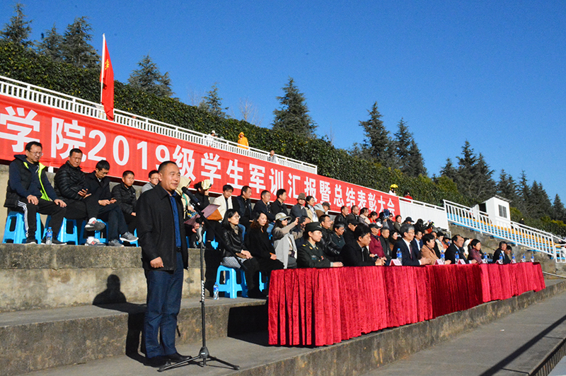 1月17日,新葡萄官网在田径运动场举行2019级学生军训汇报表演暨总结表彰大会。学校党委书记陈永明,校长黎素梅,党委副书记熊晶,副校长郭华、马银海、沈凡、王凡,云南民族大学人民武装学院院长普卫明、副院长魏琳等领导出席大会。大会由郭华副校长主持。