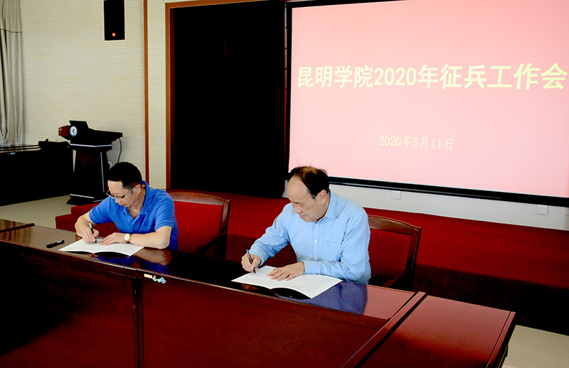 会上,陈永明书记代表学校党委与二级学院代表签订了《2020年度新葡萄8883官网AMG大学生征兵工作目标管理责任书》。