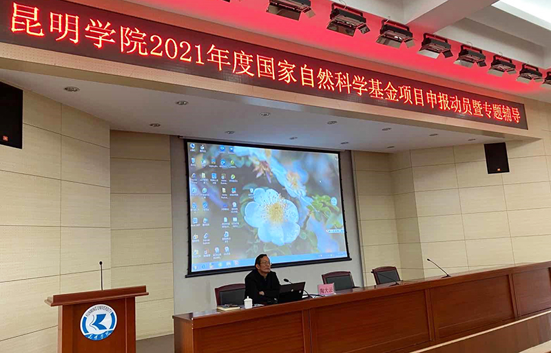 10月30日,学校召开2021年度国家自然科学基金项目申报动员暨专题辅导培训会。云南省农业科学院国际合作处处长陶大云研究员应邀到会上作了题为《如何做好基础研究》的专题报告。校长丁文丽出席会议并作项目申报动员,副校长马银海主持会议。各学院院长、分管科研副院长、科研秘书、科研骨干教师和科技处全体人员等150余人参加了培训会。