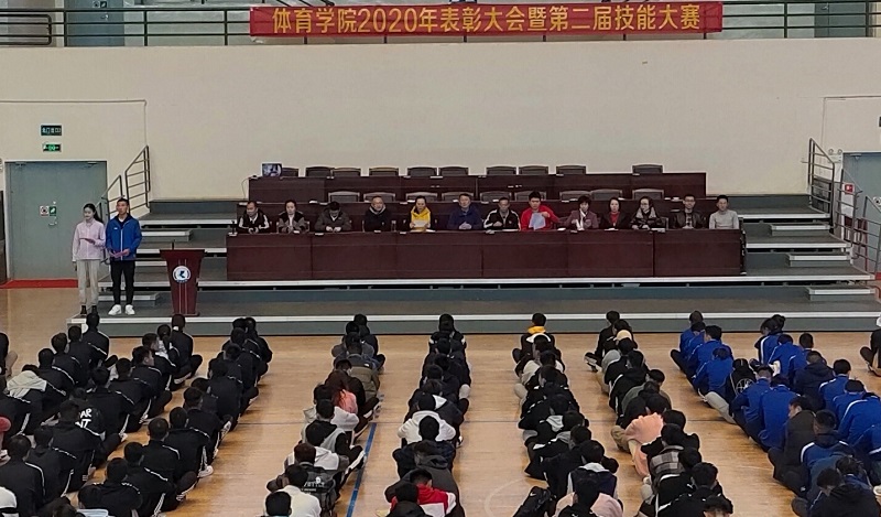 12月26日,体育学院在综合馆举行2020年度表彰大会暨第二届教学技能大赛,进行教学成果展示,为一年一度的“体育学院校园体育文化月”活动划上圆满的句号。体育学院院长叶燎昆,副院长周明,体育学院全体师生参加本次大会。