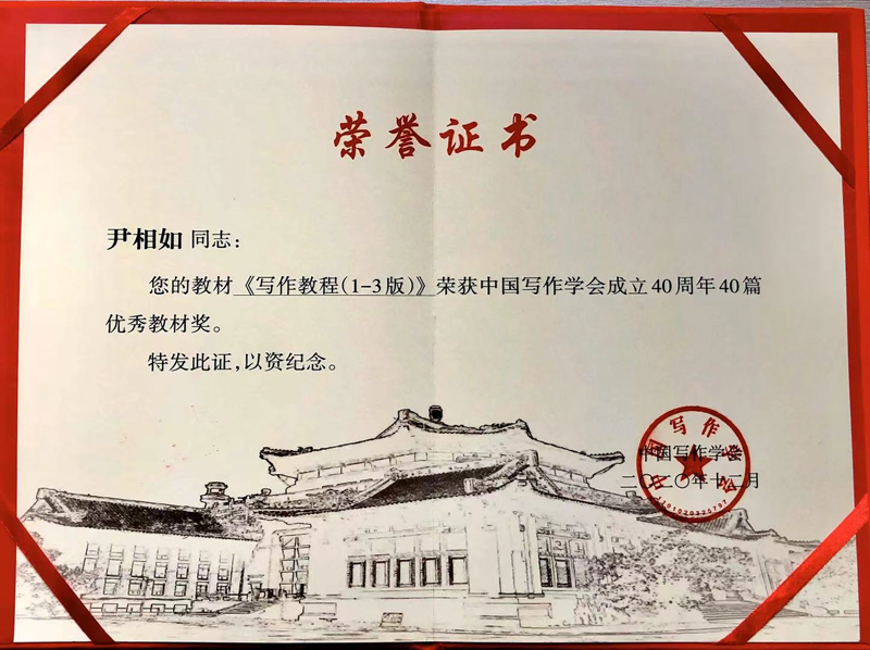 近日获悉,学校人文学院推荐参评的尹相如教授主编、王昆建教授、石静副教授参编的《写作教程》荣获“中国写作学会成立四十周年优秀教材奖”。