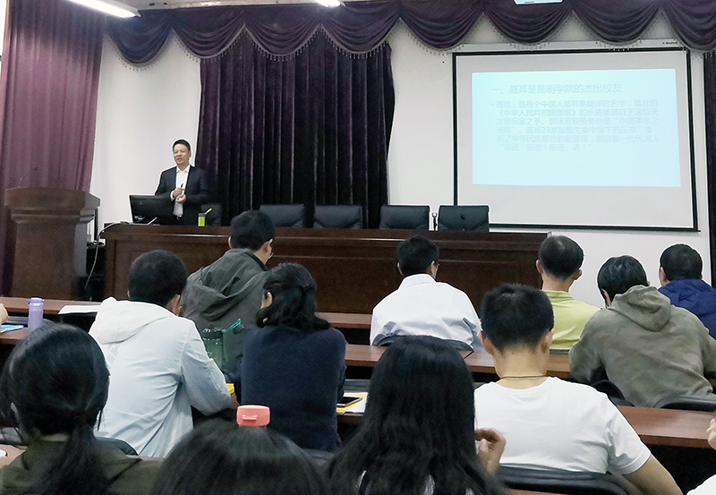 为贯彻落实习近平总书记在党史学习教育动员大会上的重要讲话精神和2020年初考察云南时强调的讲好“聂耳和国歌的故事”的要求。4月30日,医学院组织全体教职工开展了“讲好聂耳和国歌的故事”专题党史学习教育讲座宣讲,学院党委书记张培宏以《讲好国歌故事,传承聂耳精神》为题为教职工进行宣讲。
