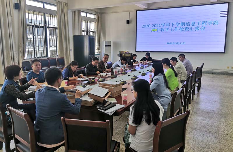 5月11日,学校第三期中教学工作检查组一行到信息工程学院开展2020-2021学年下学期期中教学工作检查。检查组和学院见面会在惟实楼3301举行.