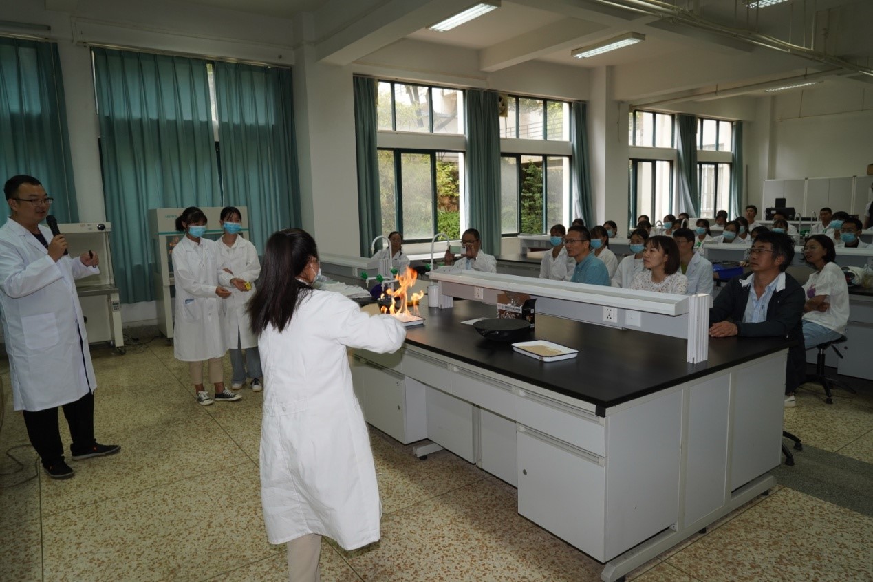本次应急演练模拟学生在实验过程中突发事件及危险化学品泄漏事故的应急处置,参演师生在统一指挥下详细演示了危险化学品泄漏后实验室人员逃生疏散、个人救护、紧急动员、事故处置、调查分析等事故应急处置规范化流程及学校实验室安全事故应急体系启动过程。从防火、防爆炸、防中毒、防烧伤预防措施、处理方法及强酸、强碱腐蚀危险化学品应急救援措施等做了详实阐述及现场演练。在演练中,通过教师指导、参演学生示范,观摩师生掌握了洗眼器、应急喷淋、灭火毯等实验室安全防护设施的正确使用方法,了解了应对危险化学品泄露的正确处置流程。