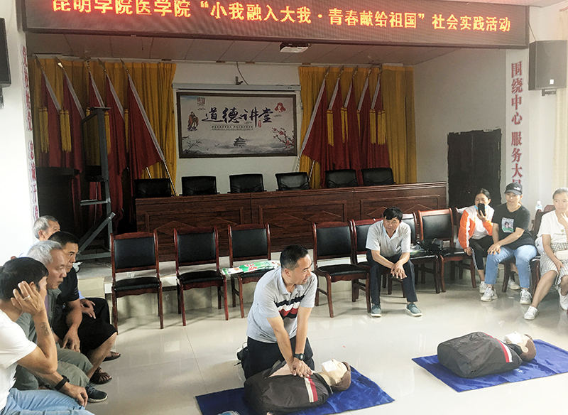 活动由医学院党委副书记李杨、团委书记杨家兴带队,4名专业指导老师、 20名大学生志愿者参加。在丘北县平寨乡、布凹村、蚌勒上寨开展志愿服务活动和“小我融入大我,青春献给祖国”实践活动。服务队分别在三个村镇开展义诊和健康宣传、急救技能培训、寻访红色革命基地、学党史实践教育活动,乡村振兴状况调查等社会实践项目。本次志愿服务活动共为当地群众提供爱心义诊和健康指导203人次,发放健康宣传资料近489份,开展疾病调查共计101人次,急救技能培训人数39多人;分别在布凹会议旧址、蚌勒上寨党建示范基地开展党史学习教育实践活动,参观调查了当地乡村振兴示范项目七彩稻田和蚌勒上寨大型养殖场。活动得到了平寨乡党委和政府的大力支持。