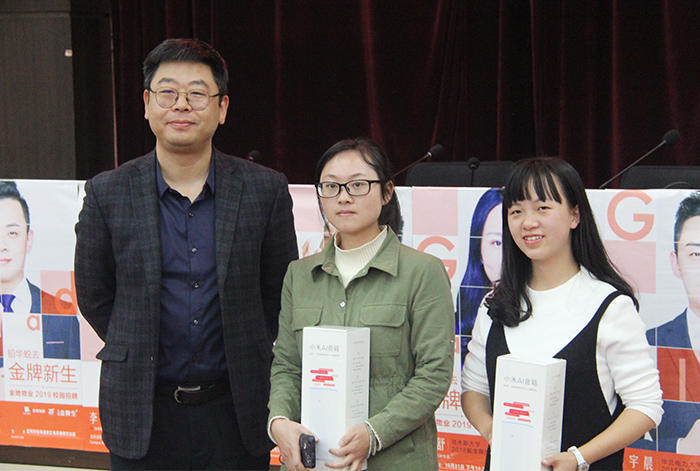 金地物业管理集团通过播放金地物业宣传片,带领同学们初步了解金地物业发展状况。覃默总监具体介绍了公司的发展历程、人才培养计划、招聘岗位、招聘流程、薪酬福利等方面情况。重点介绍了新员工接入通道、跨系列上升通道和递进式发展通道等发展模式,展现了金地物业管理集团的创新管理、人才培养新模式。并提出了钻石型复合人才新概念,展现了对复合型人才毕业生的强烈需求。