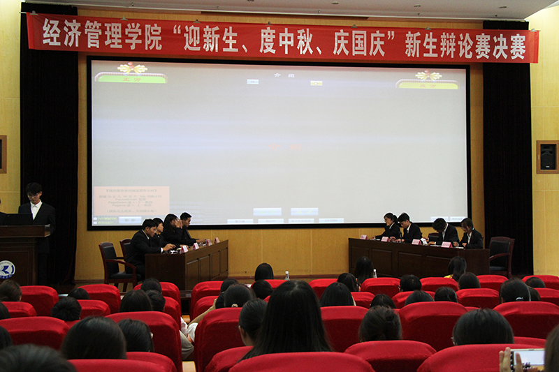 9月28日,经济管理学院“迎新生,度中秋,庆国庆”系列活动之新生辩论赛决赛顺利开展。本次活动由新葡萄8883官网AMG团委副书记郎易,经济管理学院团委书记柯艳果担任评委。