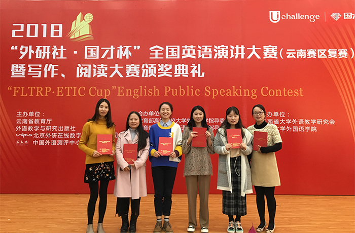 11月2日,2018“外研社杯”全国英语演讲大赛云南赛区复赛暨2018“外研社杯”全国英语写作、阅读大赛颁奖典礼在云南大学呈贡校区外国语学院一楼报告厅举行。新葡萄官网外国语学院2016级英语专业学生洪若琳、生科系2018级生物技术专业学生邹宇婷和学特学院2016级学前教育专业学生杨艺琛分别荣获了本次阅读大赛省级二等奖、写作大赛省级二等奖和演讲大赛省级三等奖。