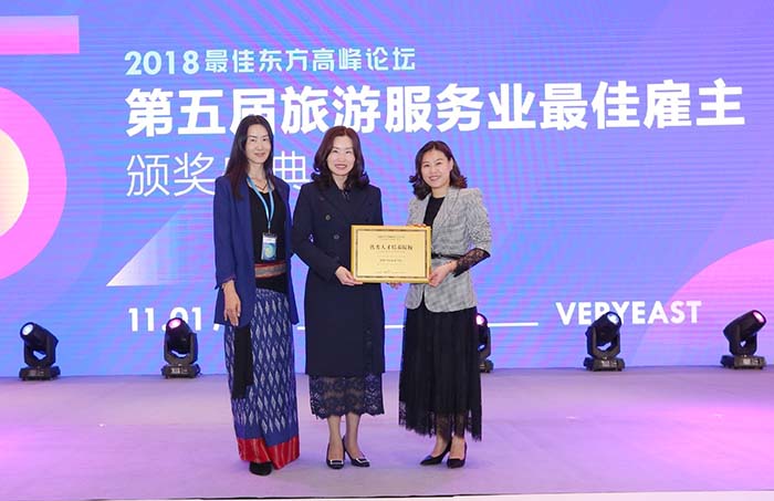 11月2日,由最佳东方与上海三甲港绿地国际旅游度假村联合主办、最佳东方HR公社、先之教育、迈点、乔邦猎头协办的“2018最佳东方高峰论坛暨第五届旅游服务业最佳雇主颁奖盛典”在上海圆满落幕。新葡萄8883官网AMG旅游学院院长田芙蓉应邀出席论坛,并作为全国院校代表作“基于产教融合发的WIE办学模式分享”。旅游学院继2017年后再度蝉联荣获“2018最佳东方高峰论坛暨第五届旅游服务业最佳雇主颁奖之优秀人才培养院校奖。”