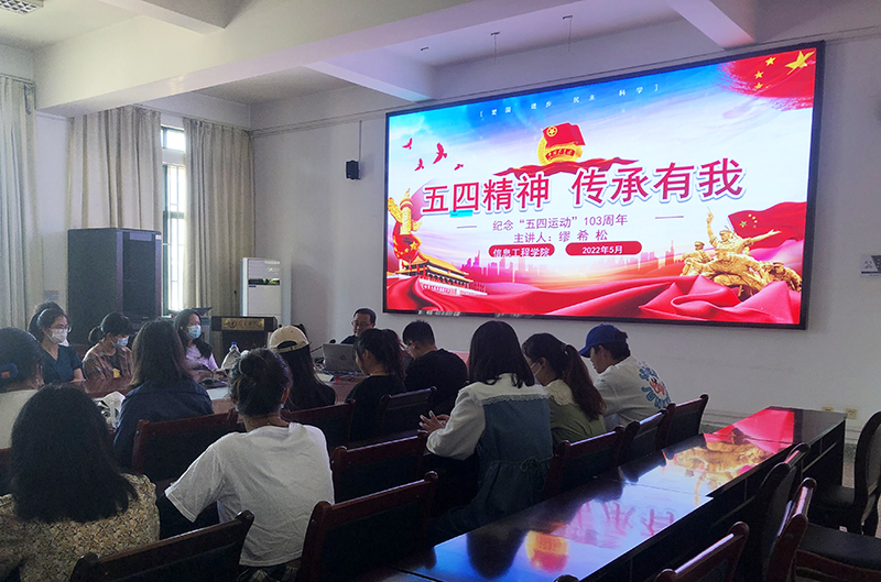 54日,为纪念五四运动103年暨建团100周年,进一步引导青年大学生牢固树立理想信念,继承和发扬“五四精神 传承有我”运动光荣传统,信息工程学院在惟实楼3301会议室,为学生党员、入党积极分子、学生会、团学干部60余人开展传承五四精神的专题党课。党课由缪希松副书记主讲。