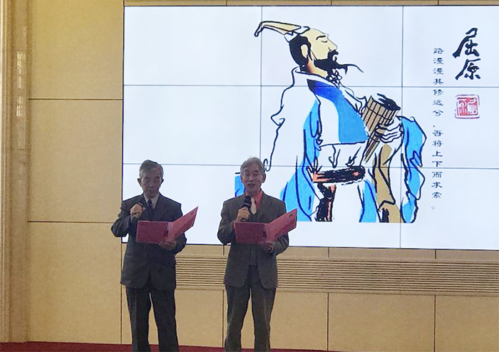 新葡萄官网退休教师曾汝弟提交的古体诗楚辞《改革开放,梦想必由路》、律诗《文明古国在复兴》分别获得二等奖和三等奖。李绍陶、徐有光老师提交的古体诗获得了鼓励奖。曾汝弟老师的《改革开放,梦想必由路》还被选到颁奖大会上朗诵。为了提高朗诵效果,曾老师认真制作了带有背景画面和音乐的ppt,还特别邀请83岁的退休教师刘人本合作朗诵。由于他们事前进行了认真排练,朗诵取得了非常好的效果,赢得了全场热烈掌声。