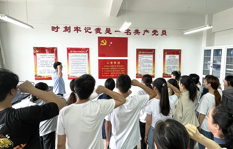 同志们在党委副书记李杨的带领下庄严宣誓,表达了为党的事业奋斗终身的决心和坚定信念。董福悦代表新党员作表态发言,表示要把入党誓词终生铭记。学院党委书记张培宏在讲话中希望党员同志们弘扬伟大建党精神,积极发挥先锋模范作用,以更加饱满的热情,更加昂扬的斗志投入到学习和工作中,以优异的成绩喜迎党的二十大胜利召开。