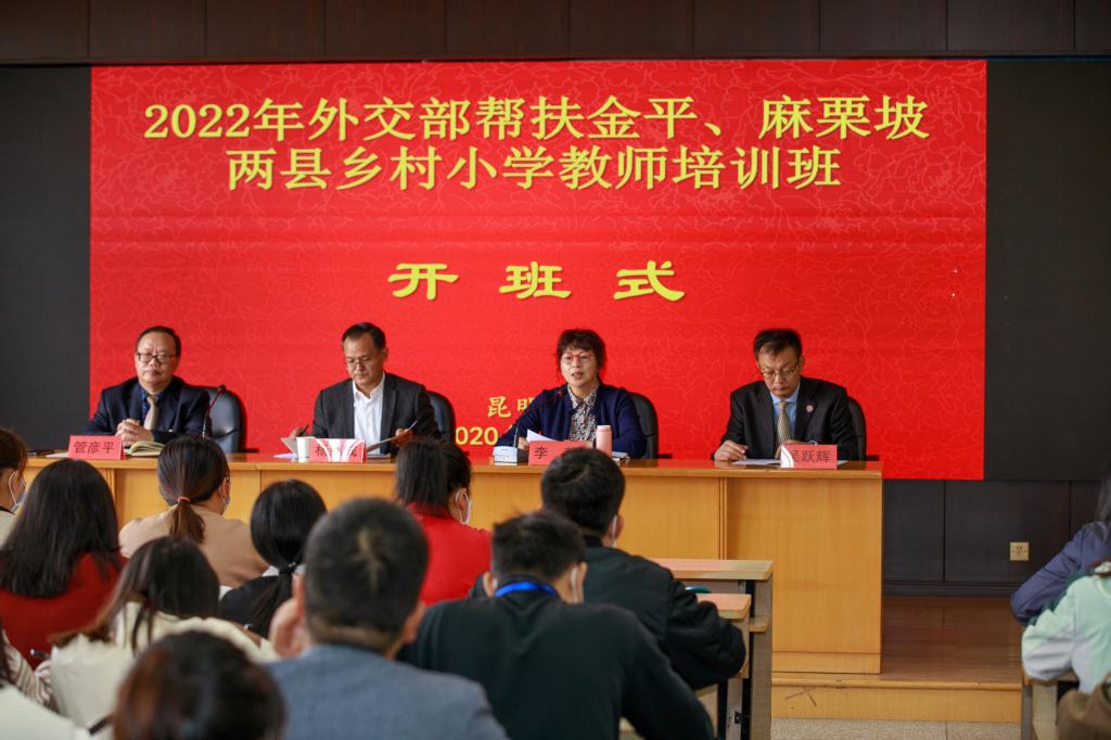 10月25日上午,2022年外交部帮扶金平、麻栗坡两县乡村小学教师培训班在新葡萄官网开班。云南省人民政府外事办公室副主任杨绍成、新葡萄8883官网AMG党委副书记李莉、省政府外事办公室人事处及新葡萄官网继续教育学院的相关领导和职能部门的同志出席了开班仪式。开班仪式由继续教育学院院长管彦平主持。