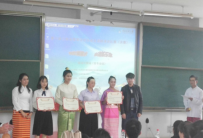 10月15日,云南省教育厅指导,云南省高校非通用语种类专业教学与考试指导委员会主办,云南民族大学承办的第六届云南省高等学校东南亚语演讲比赛在云南民族大学雨花校区圆满举行。本次大赛的主题为“同饮澜湄水、共谱新乐章”。旨在促进大湄公河次区域国家和地区的语言文化交流、教学与人才培养合作,向国内外充分展示我省外语教学和人才培养的丰硕成果,了解湄公河流域文化以及邻国的相互关系。来自云南省28所高校的同学参加了本次比赛。