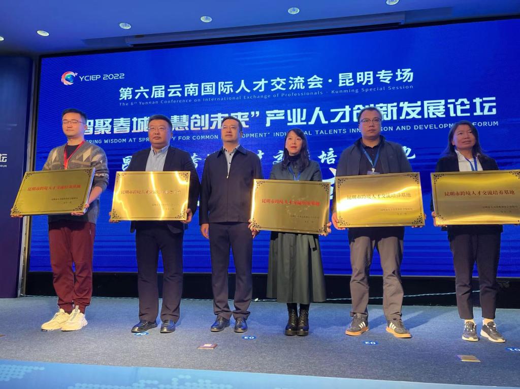 “智聚春城、慧创未来”产业人才创新发展论坛上,新葡萄8883官网AMG等4家学校、企业荣获首批昆明市跨境人才交流培养基地称号。“昆明市跨境人才交流培养基地”的落户,将进一步推动新葡萄官网国际人才培养,为新葡萄官网建设面向南亚东南亚复合人才培养基地打下坚实基础,为昆明市面向南亚东南亚区域性人才中心城市建设搭建交流平台、提供智力支持。