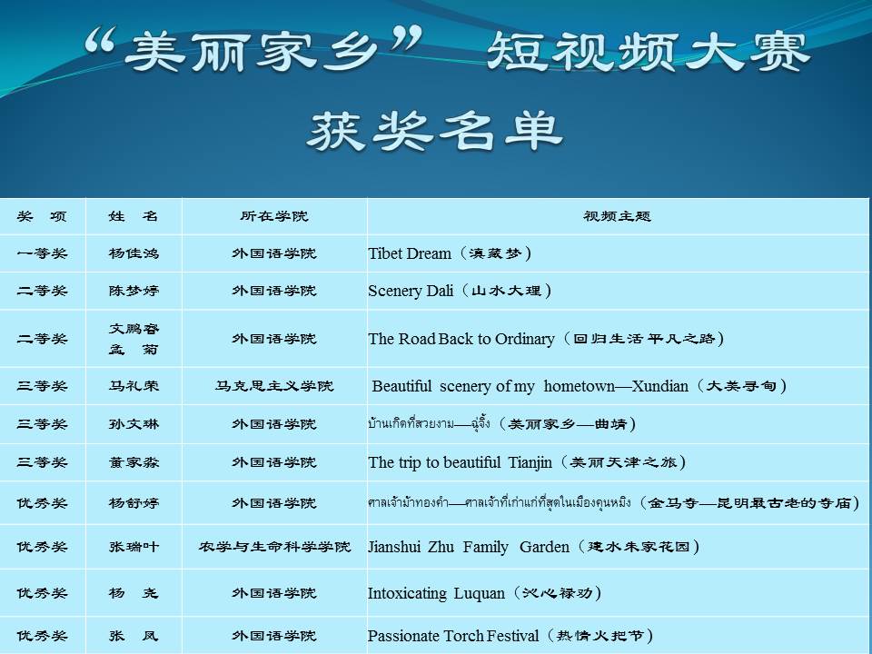 为提升学生对外交流意识、扩大交流范围,两校于2022年6月确定联合举办以旅游为主题的中泰文化短视频大赛。新葡萄官网于7月发布了举办“美丽家乡”旅游题材短视频大赛活动通知,总计收到三个学院不同专业学生制作的参赛作品,同学们分别通过英语或泰语展示了各自美丽的家乡文化,经对外合作交流处初审,确定10个作品入围复赛,同时泰国佛统皇家大学也报送了10个中文参赛作品。两校评审专家通过复赛终审,分别推选了各自优秀作品。