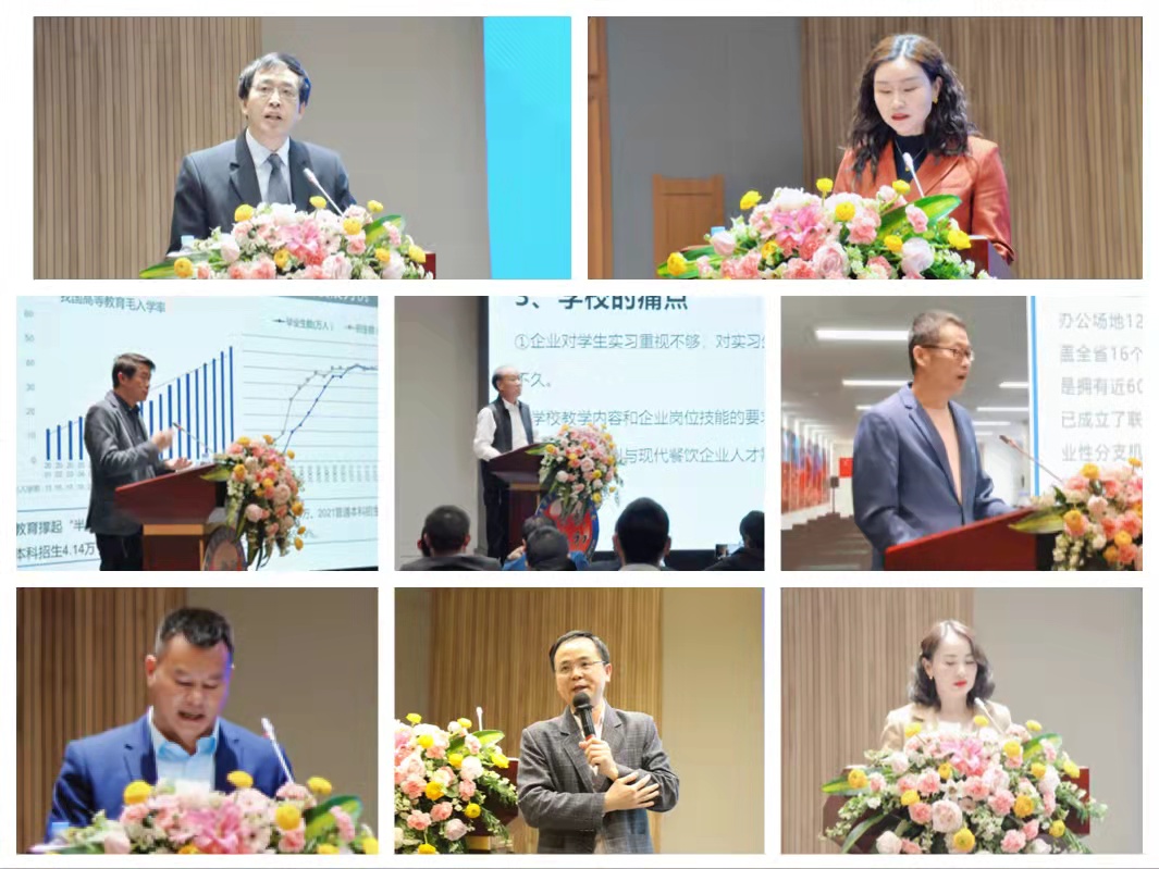 全国餐饮职业教育教学指导委员会副主任委员石长波教授致辞,对教专委的成立表示祝贺,希望教专委和产学研融合共同体担负起培养适应餐饮业发展需求专业性、知识性、应用性人才的光荣使命。产教融合共同体负责人、教专委主任新葡萄8883官网AMG旅游学院院长田芙蓉介绍了专委会成立背景、宗旨、职责,并围绕职业教育自立自强提出的五项重点工作,介绍了产教融合共同体、教专委的工作思路及工作重点。