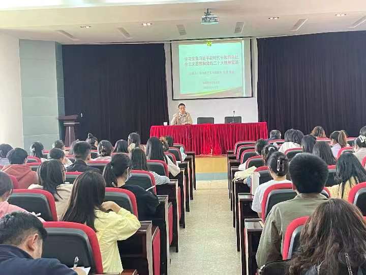 陈嘉教授以《学习贯彻习近平新时代中国特色社会主义思想和党的二十大精神》为题,为师生们深入解读了党的二十大报告的核心要义。大家表示,要以习近平新时代中国特色社会主义思想和党的二十大精神为引领,脚踏实地、团结奋斗,为学校事业蓬勃发展助力,为强国建设、民族复兴贡献力量。