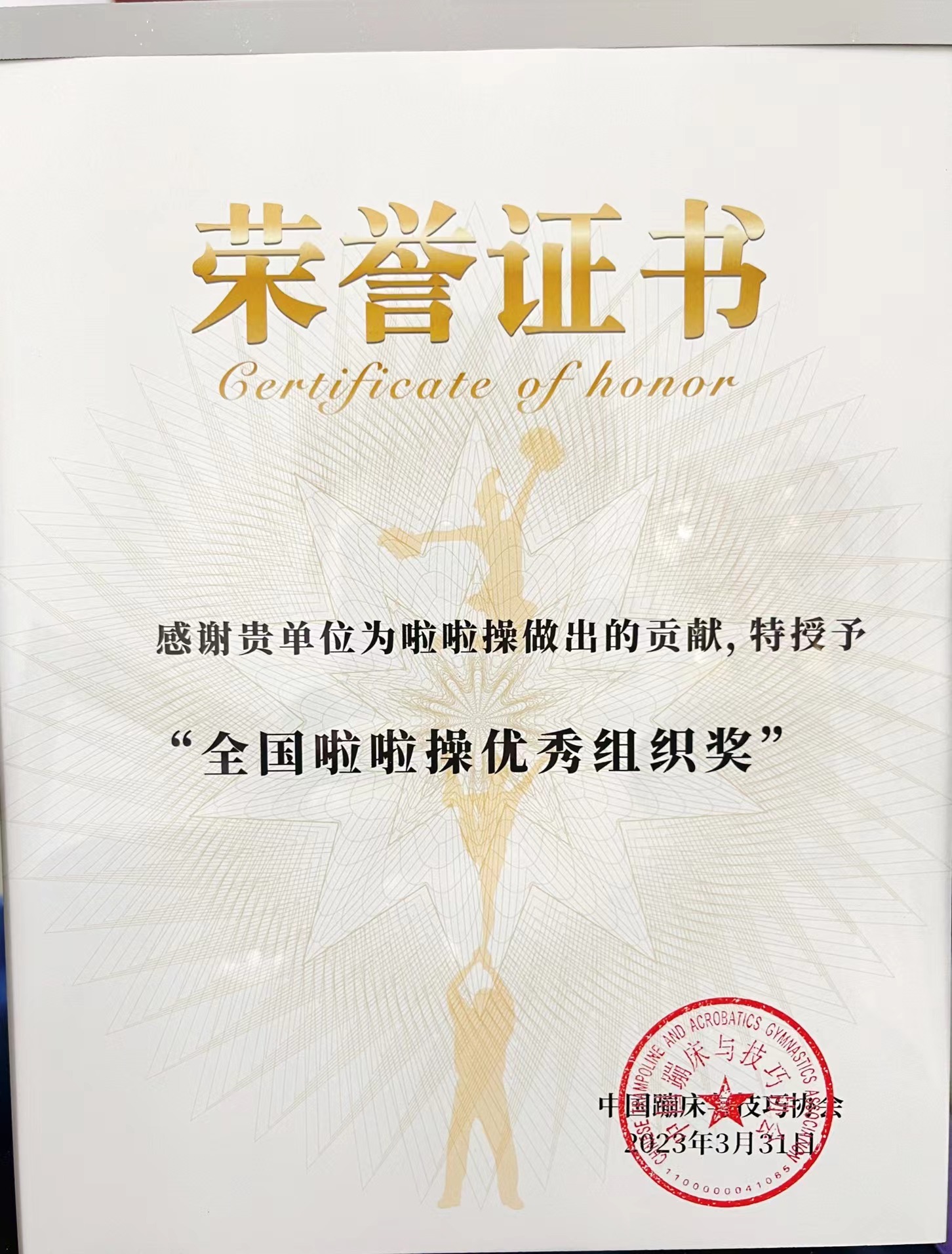 在本届中国啦啦操文化纪各项目评选中,新葡萄官网学前与特殊教育学院Jungle Warriors啦啦队获评“全国啦啦操二星级俱乐部”,并荣获“全国啦啦操优秀组织奖”。