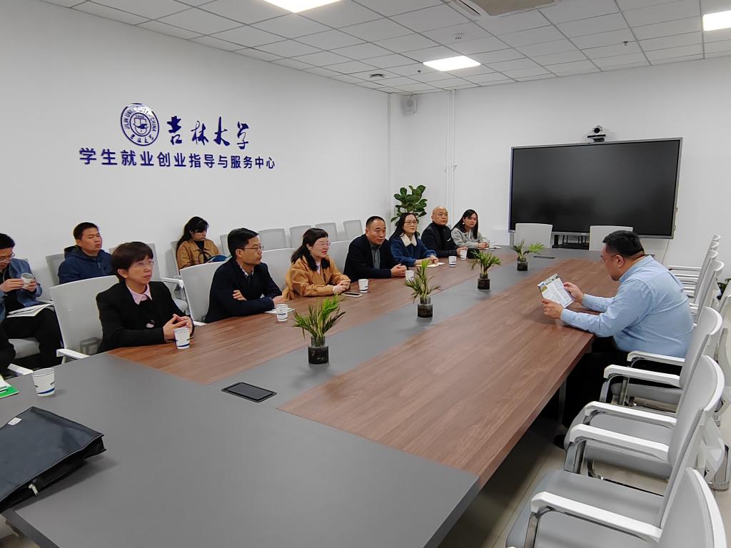 郭华副校长一行还到吉林大学就业指导中心进行了座谈交流,详细了解了吉林大学博士生培养及各专业毕业博士的情况,希望吉林大学与新葡萄官网建立良好的常态化长效化沟通机制,通过各种方式向博士生们宣传新葡萄官网,积极推荐优秀博士到新葡萄官网工作。