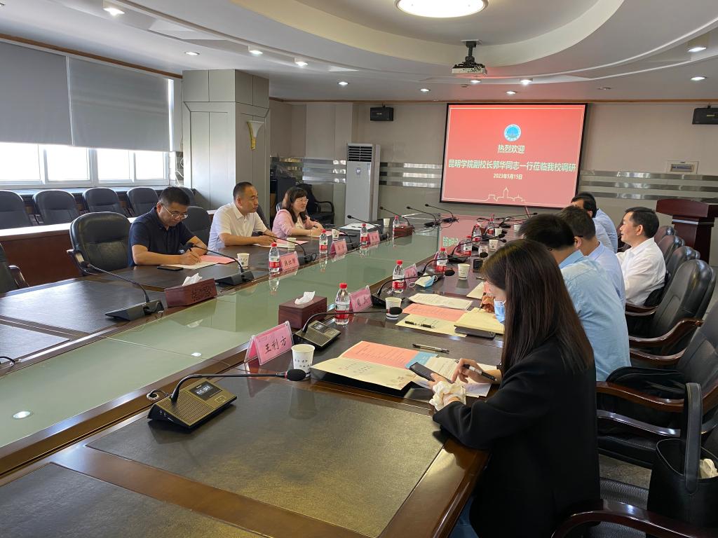 郭华副校长对新葡萄官网基本情况以及调研目的进行了详细说明。与会双方围绕高层次人才引进与培养、教师职后培养与发展、职称评审、人才项目申报、人才计划工程建设等方面进行了深入探讨和交流。