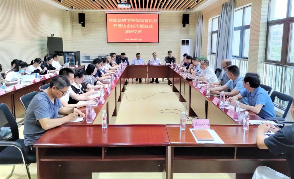6月1日,学校党委副书记王文成带队前往富民县开展“访企拓岗促就业”工作,与富民县副县长杨艾坤座谈交流。富民产业园区管委会、县人才办、县人社局、县科工信局、县教体局、县民政局、县工商联及辖区学校、企业代表,新葡萄官网体育学院、人文学院、农学与生命科学学院、信息工程学院、课程中心、招生就业处等学院、部门负责人参加。