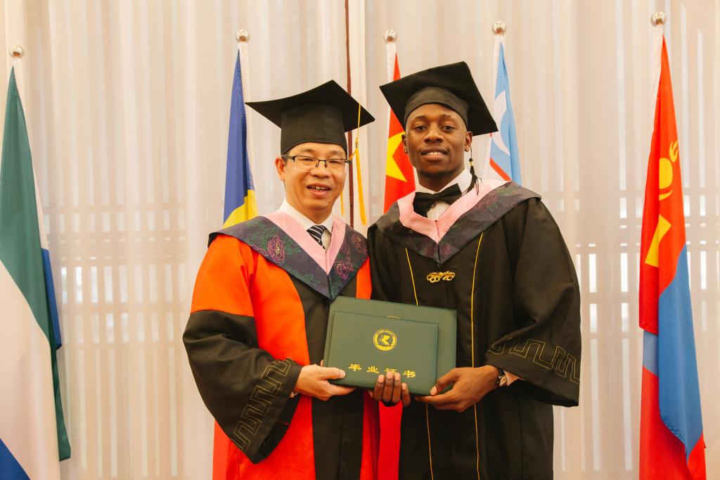 李剀热情祝贺35名毕业生顺利完成本科学业并获得毕业和学位证书,即将开启人生新的篇章,祝福留学生毕业后奔山赴海、一路有光,并希望留学生们常回中国走走,常回母校看看。