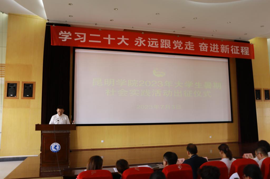 7月3日,新葡萄8883官网AMG2023年大学生暑期社会实践出征仪式在惟行楼1501报告厅举行。学校党委副书记李莉,宣传部、团委、学生处、教务处、招生就业处相关领导和各二级学院党委副书记出席仪式。校团委全体教师团干部,各二级学院团委书记及暑期社会实践活动志愿者代表参加。仪式由校团委副书记郎易主持。