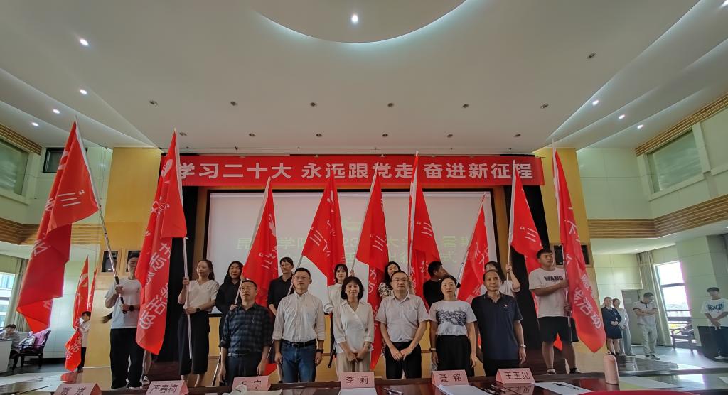 出征仪式上,学校团委书记聂铭宣读今年学校大学生暑期“三下乡”社会实践团队名单,参加启动仪式的领导为“三下乡”社会实践团队代表授旗。团队教师代表经济管理学院团委负责人王晗奕老师和社会实践学生代表医学院2021级护理学3班的何思齐同学分别作发言交流。他们表示,将秉承“明德至善、知行利物”的校训和“奉献、友爱、互助、进步”的志愿服务精神,为服务当地乡村振兴、普及理论知识、促进民族团结贡献青春力量。