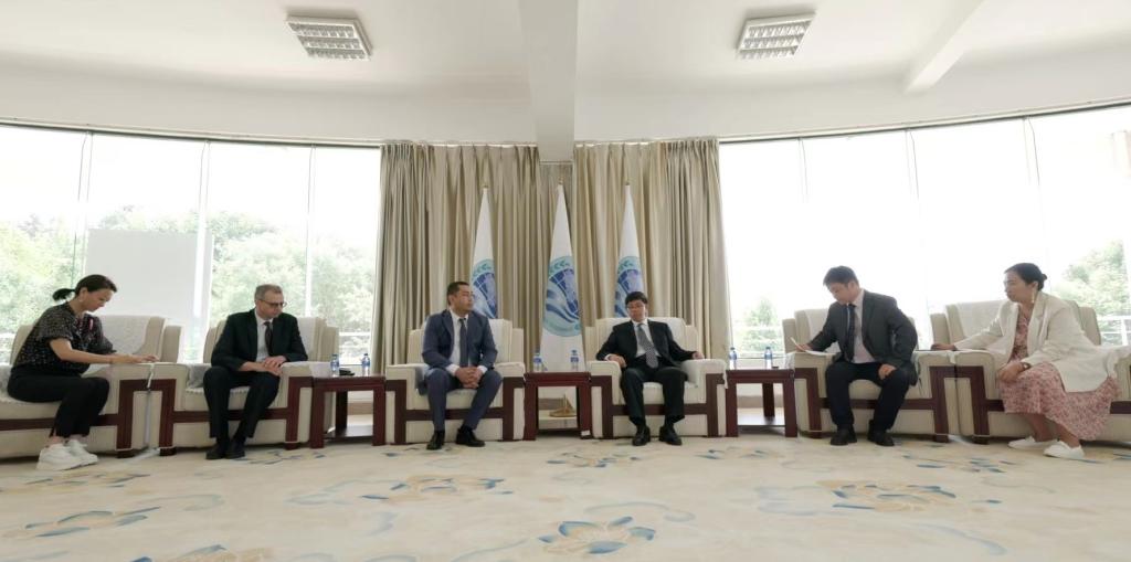 6月26日,上海合作组织秘书处参赞波波诺夫、一级专家道博伟一行到访新葡萄8883官网AMG,参观了中国—上合组织青年交流中心(以下简称“中心”)。学校党委委员、副校长李剀向波波诺夫一行介绍了新葡萄8883官网AMG和“中心”的基本情况。