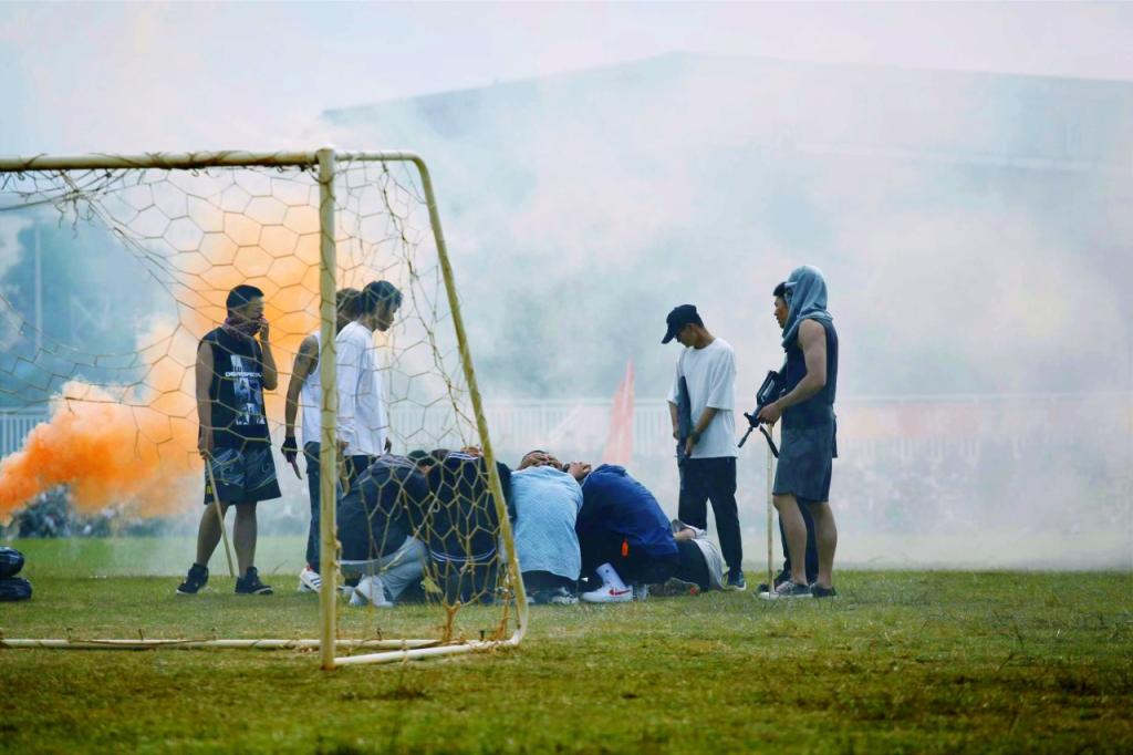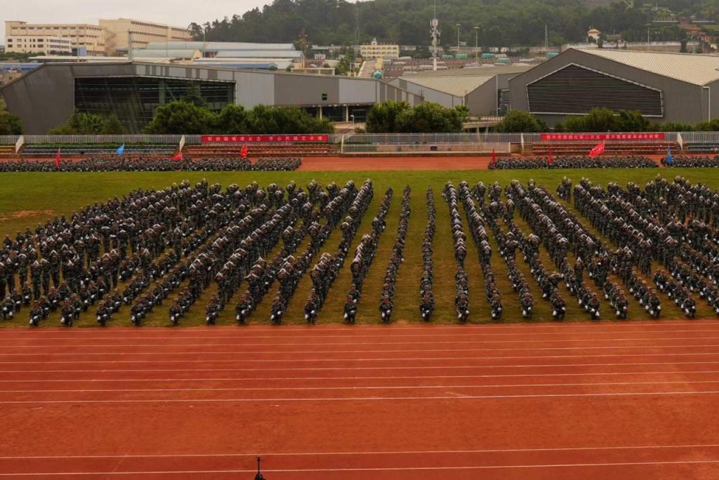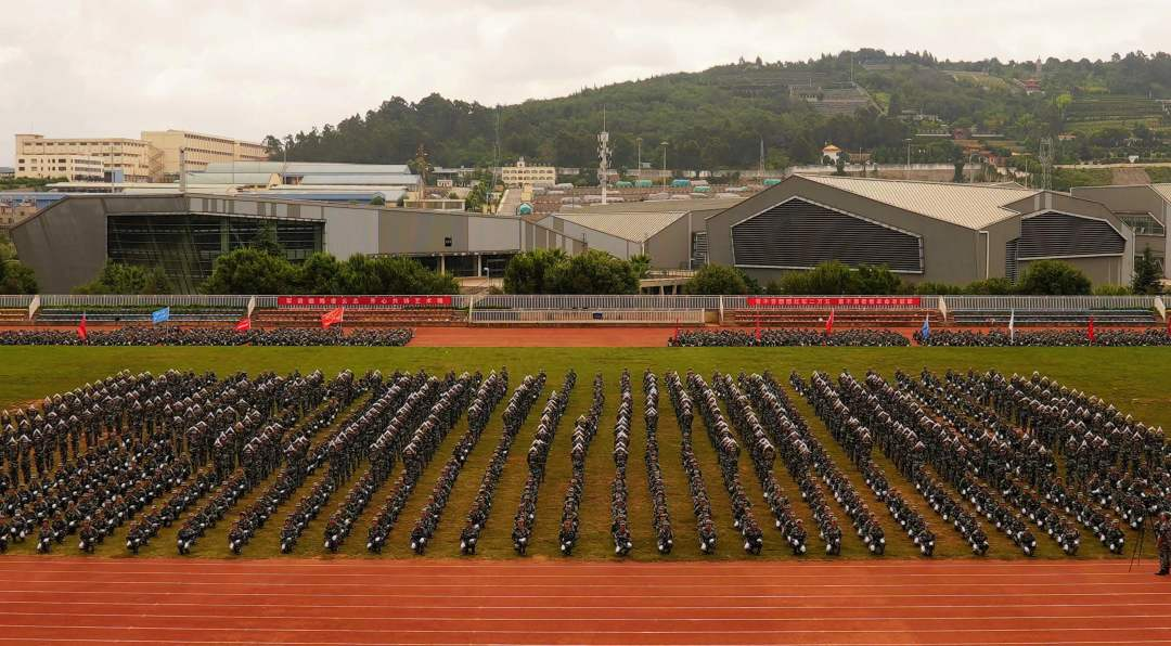 嘹亮的口号回荡在田径场上