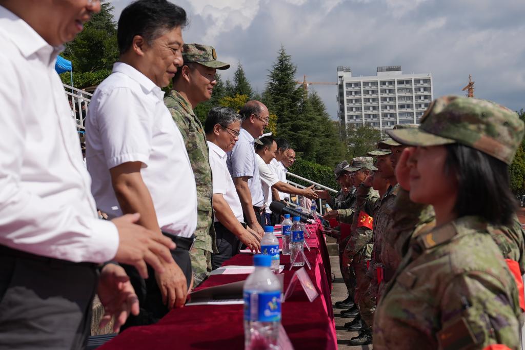 学校党委书记金幼和等校领导,中国人民解放军某部队政治部上校主任王耀、少校参谋颜惠敏,官渡区人民武装部中校副部长杨鹏,经开区消防救援大队政治教导员张晨出席。