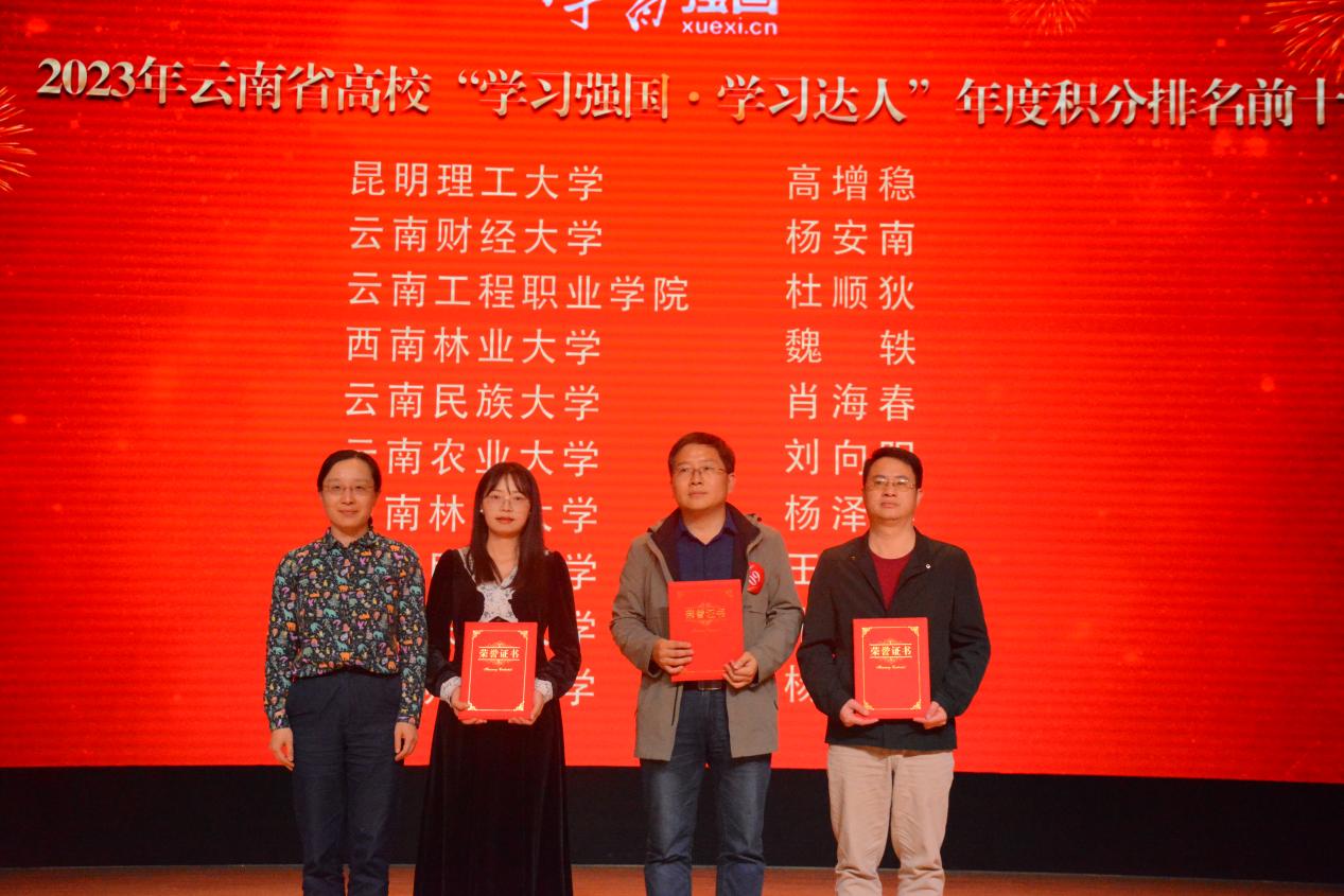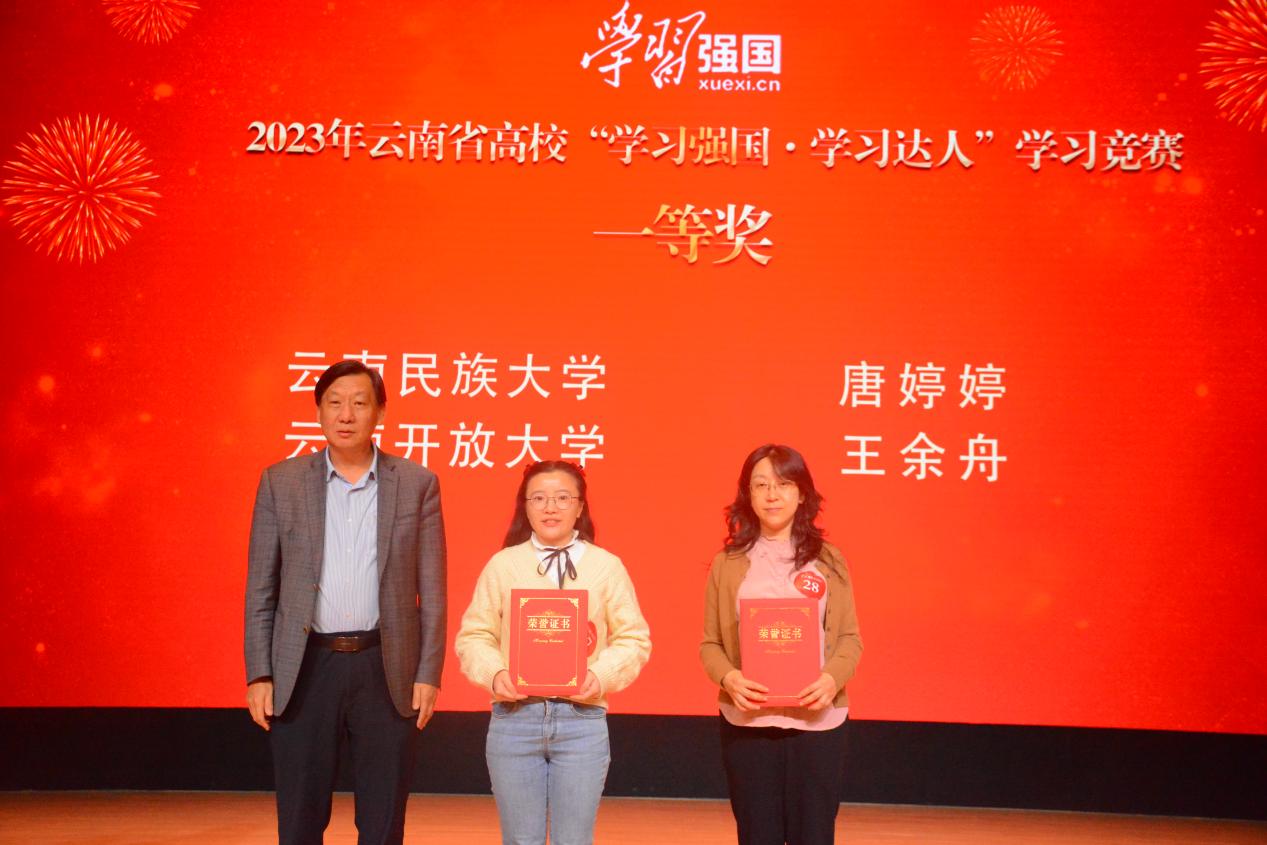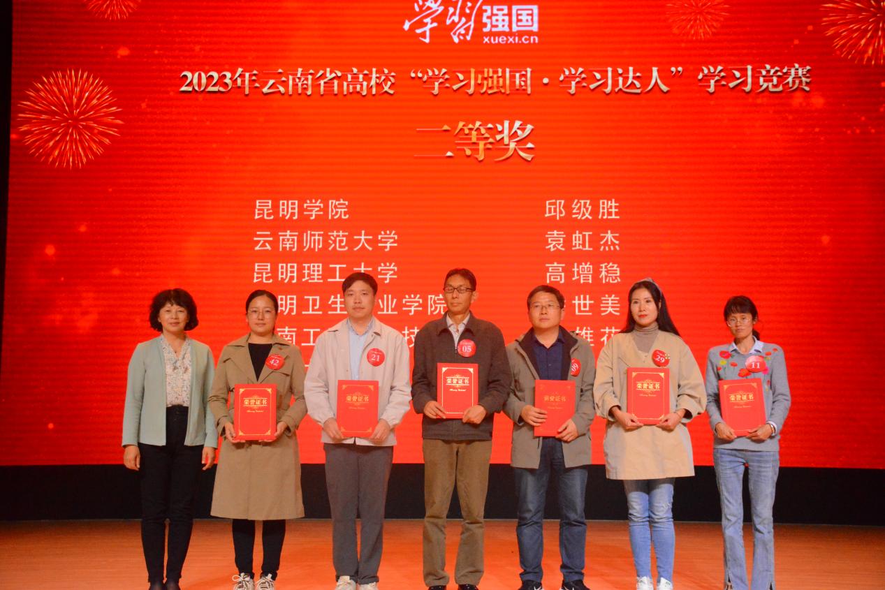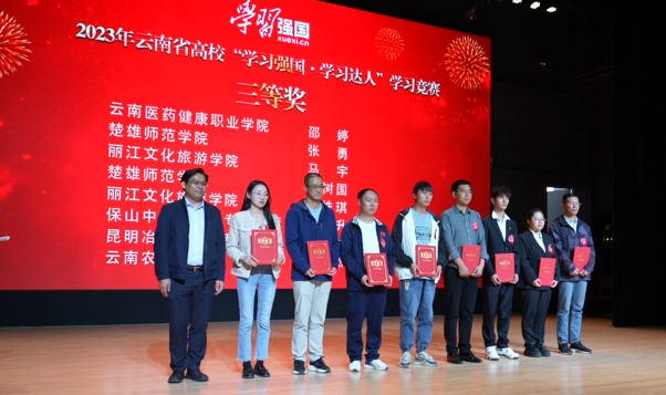 参赛选手反应敏捷、沉着应战、配合默契,展现了“比学赶超、奋勇争先”的精神风貌。经过激烈角逐,云南民族大学唐婷婷、云南开放大学王余舟获一等奖,新葡萄8883官网AMG邱级胜等6名参赛选手获二等奖,云南医药健康职业学院邵婷等8名参赛选手获三等奖。此次活动还遴选出全省高校10位年度“学习达人”。新葡萄8883官网AMG党委副书记李莉,省委教育工作领导小组秘书组、省委教育工委、省教育厅关工委有关同志出席活动并为获奖师生颁奖,全省在昆高校党委宣传部门负责人参加了现场观摩。