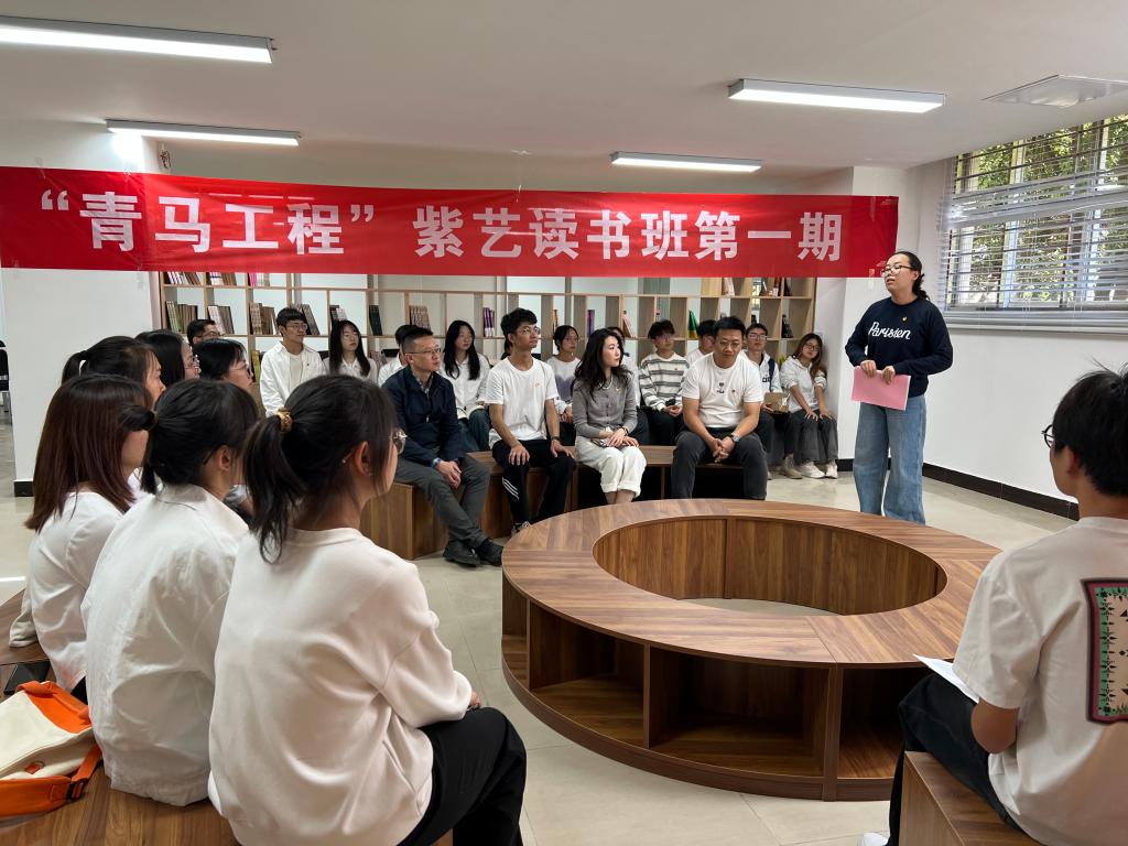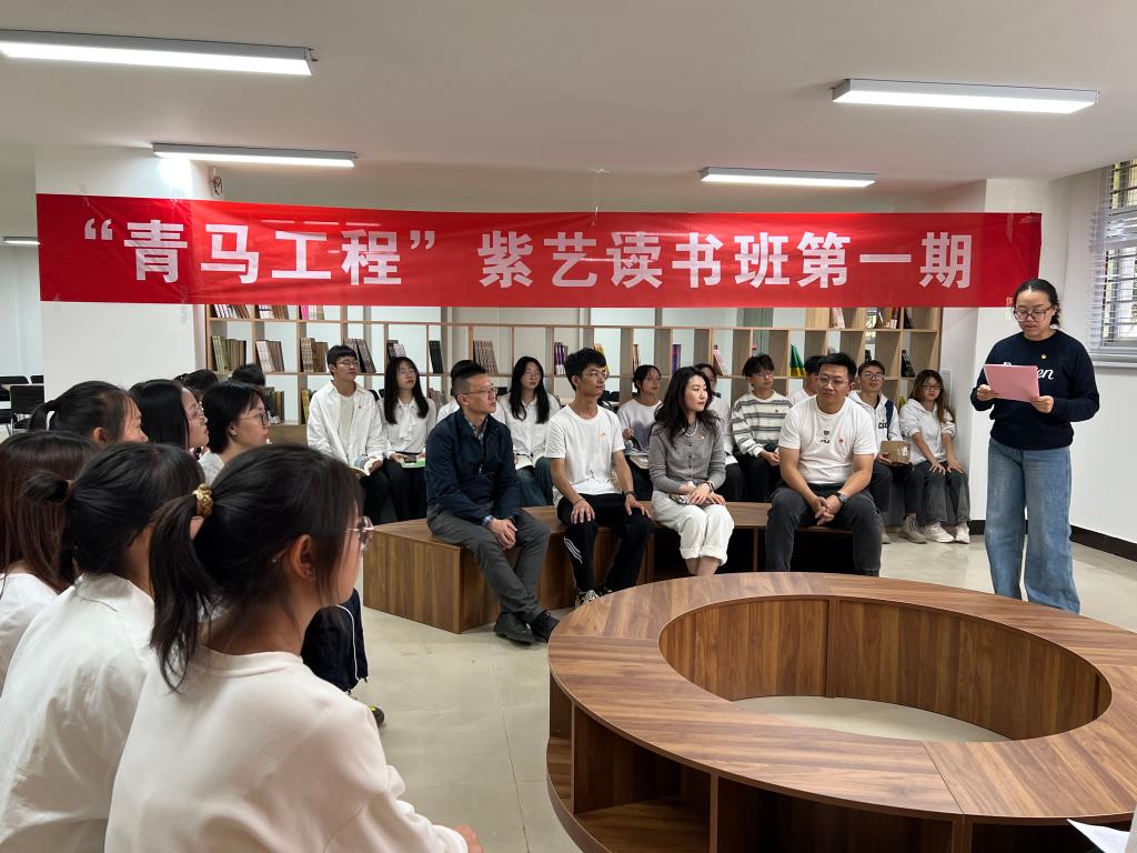 11月4日下午,新葡萄8883官网AMG团委在“一站式”学生社区党建文化悦读空间举办“青马工程”第二期紫艺读书会。校团委、二级学院团委相关师生团干部,校团委宣传部、新媒中心、学术科创部、广播台、学生成长服务中心、研究生会、大学生艺术团等“青马”学员参加读书会。