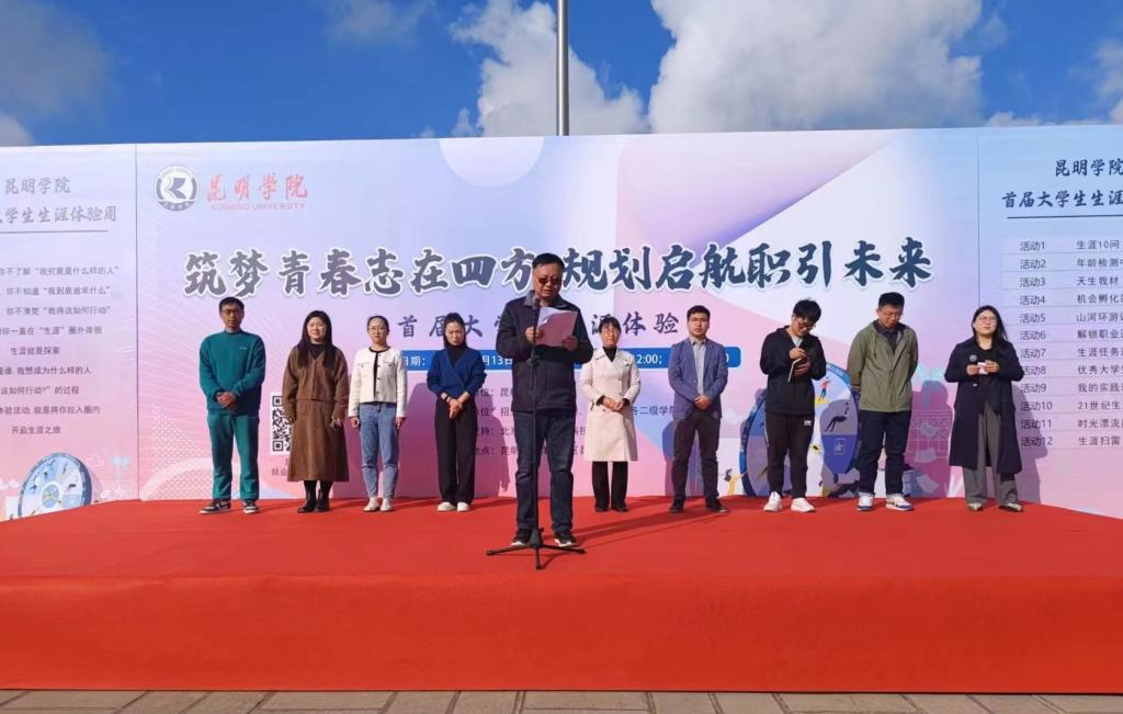 11月13日上午,新葡萄8883官网AMG首届大学生“生涯体验周”活动启动仪式在聂耳广场举行。活动旨在贯彻落实教育部和省委教育工委、省教育厅关于举办首届全国大学生职业生涯规划大赛的相关要求,进一步提升就业指导服务水平,强化就业育人实效,帮助大学生实现人岗匹配和生涯发展的和谐统一,达到“以赛促教、以赛促学、以赛促就”的目标。学校招生就业处、团委有关负责人,各学院分管就业工作辅导员,就业指导中心全体教师,各学院志愿者和学生代表参加了启动仪式。