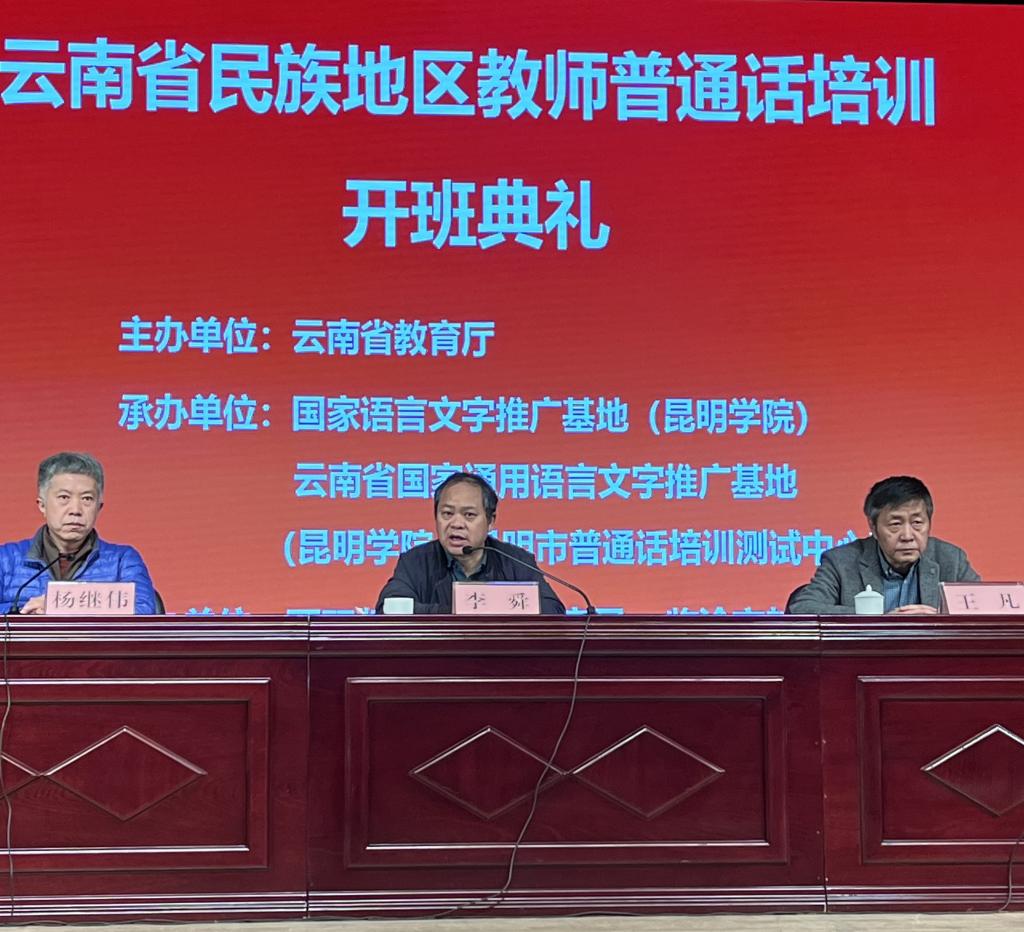为贯彻落实教育部、国家语委对教师普通话水平的等级要求,落实云南省教育高质量发展三年行动计划,根据《云南省教育厅关于做好民族地区教师普通话培训的通知》要求,由省教育厅主办,国家语言文字推广基地(新葡萄8883官网AMG)、云南省国家通用语言文字推广基地(昆明市普通话培训测试中心)联合承办的云南省民族地区教师普通话培训,于1月15日上午在新葡萄官网学生会堂举行了开班典礼。