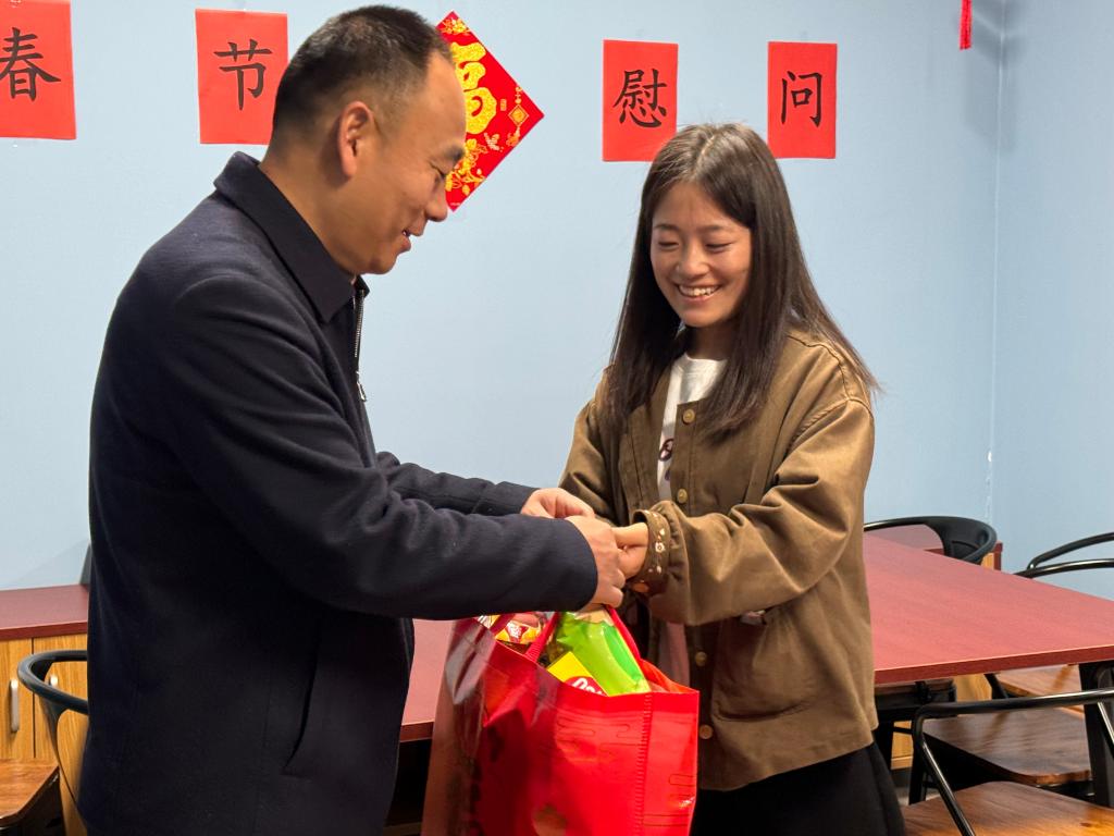 卯兔辞旧,祥龙迎新,在农历甲辰年新春佳节来临之际,新葡萄8883官网AMG开展了2024年春节关爱留校学生慰问活动。2月3日上午,正值中国传统小年,新葡萄8883官网AMG党委委员、副校长郭华带领学生处、后勤集团及农生、医学、数学、体育、国际等二级学院相关领导、老师看望了假期留校的本科生、研究生、留学生并进行了慰问座谈,代表学校向留校学生致以节日问候和良好祝愿并送上福袋礼物。恭祝大家新春快乐,万事顺意,阖家幸福。