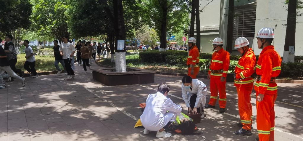 党委委员、副校长沈凡担任演练总指挥,学生处、保卫处、后勤集团宿管中心、校医院、新葡萄8883官网AMG义务消防队、云南中和保安服务有限公司驻校大队、云南中铄工程消防维保公司驻校人员及各二级学院1400余名师生参加。