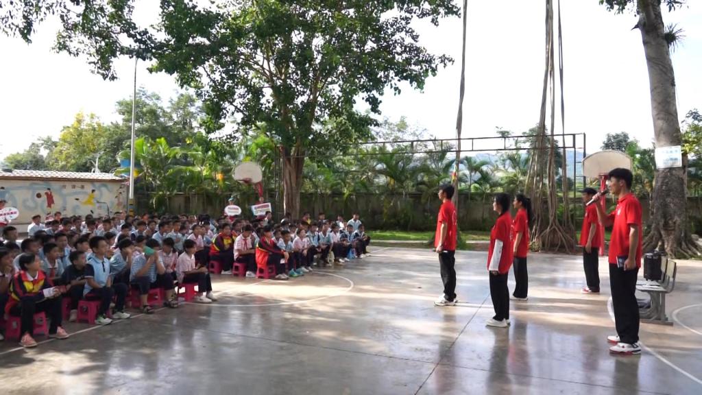 实践团来到勐腊县勐仑中心小学,向小朋友们送去了文教体育用品,面向一百多名六年级学生开展暑期志愿公益课程。教学内容分为童心向党宣讲、益智启航小课堂及“艺”起成长舞蹈课堂三个环节,通过演绎聂耳与国歌的情景剧,讲述中国青年脱贫攻坚与乡村振兴的奋进故事,生动有趣的物理实验,以及民族舞、现代舞与互动舞蹈教学,以革命故事传承红色基因,用科技艺术助力素质培养。