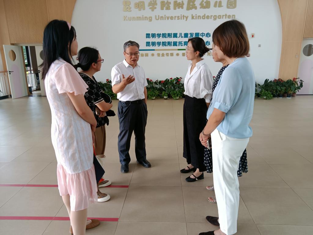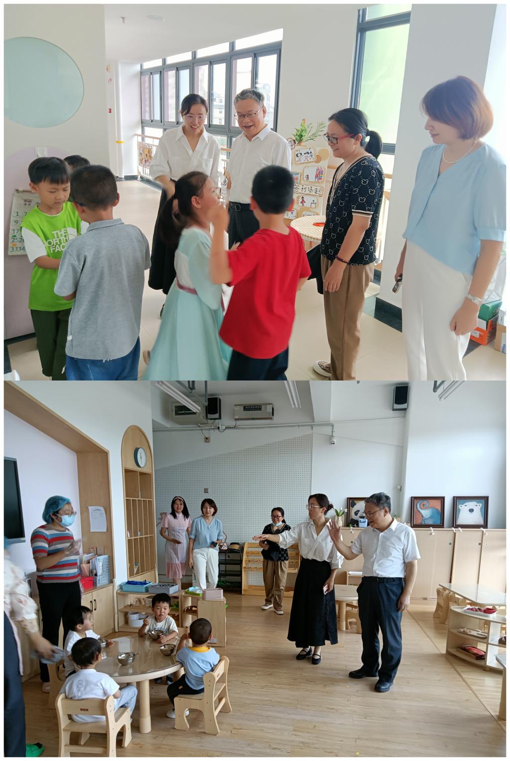 7月24日上午,学校党委副书记、工会主席王文成及工会部门全体人员一行,到幼儿园看望并慰问了暑期托管班的教师及孩子们。王文成详细了解了托管班的日常运作情况,对幼儿园精心组织的幼儿一日生活活动、游戏活动、户外活动、学习活动以及孩子们活泼向上的精神面貌表示肯定。