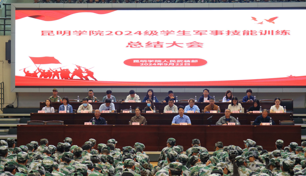 9月22日上午,2024 级本科新生军事技能训练总结大会在学校体育综合馆落幕。学校学生处(武装部)全体成员、各二级学院军训带队辅导员、教官以及 2024 级本科新生参加。总结大会由学生处(武装部)副部长缪希松主持。学生处副处长刘艳萍宣读了《新葡萄8883官网AMG关于表彰2024级军训优秀学员、优秀带队教师、优秀教官、内务优秀宿舍的决定》。王涛处长对教官、带队教师表达了深切的衷心感谢,同时激励同学们以昂扬之姿走好大学“新长征”之路。