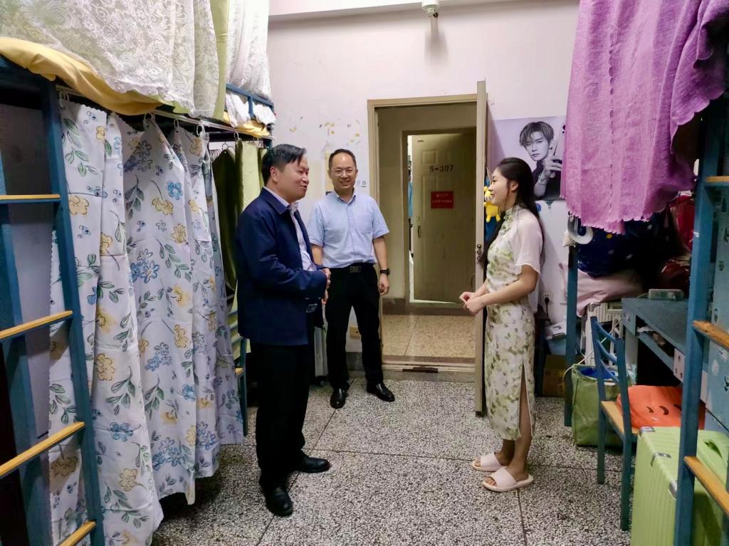 近日,学校组织开展2024年“一站式”学生社区“面对面、心连心”大走访活动。学校党委副书记李莉、王文成,党委委员、副校长彭志远,学生处、保卫处会同19家二级学院深入“一站式学生社区”,与学生亲切会谈。及时了解掌握同学们的所思所想,帮助同学们解决学习生活中遇到的问题和困难,发现和解决校园内的安全隐患,营造安全稳定和谐的氛围,不断推进文明校园创建工作走深走实。